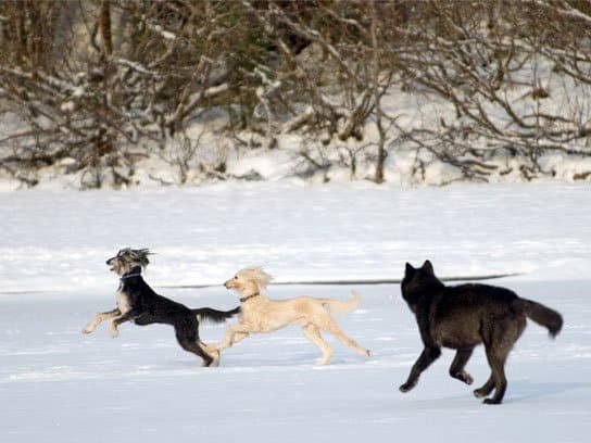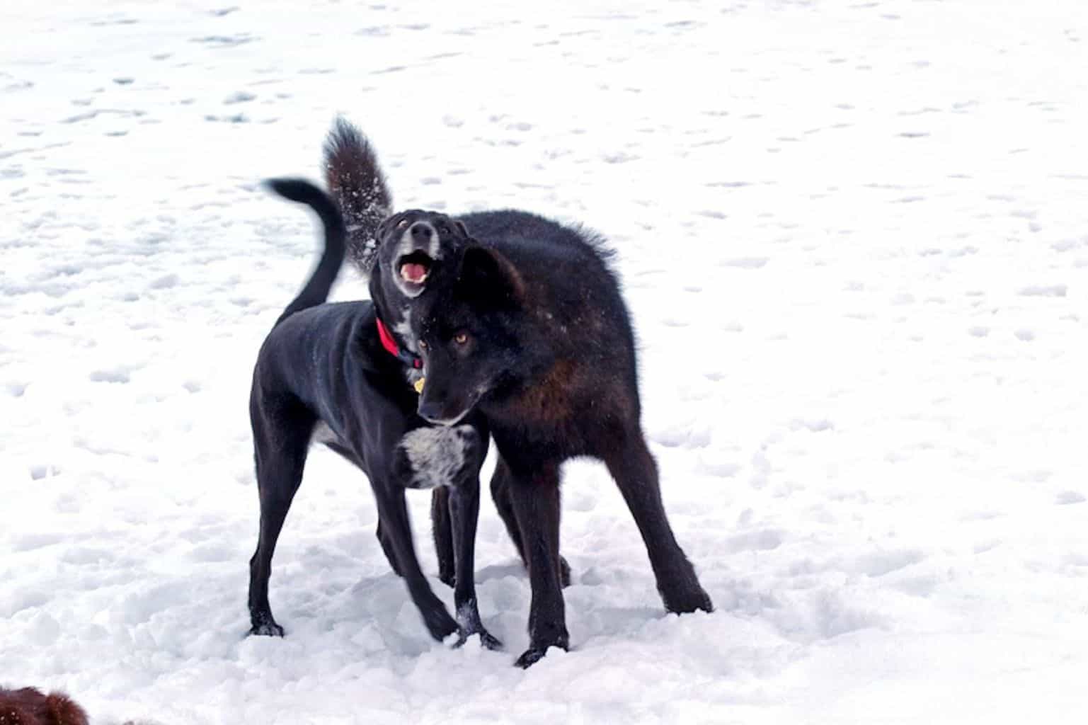 After a few moments Dakotah turned and walked back to her family as the wolf, who Nick’s wife began to refer to as “Romeo” watched her go. A couple days later while out for a ski with Dakotah, Nick saw Romeo again. He ran out of the woods directly to them, and then another strange thing happened – Romeo and Dakotah stated to play. In Nick’s own words, this is what happened: “As I watched open-mouthed, they switched to pawing and mouth-fighting like yearlings, interspersed with the wolf’s gravity-defying leaps and spins.”